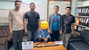 วันที่ 18 ต.ค. 67 เวลา 16.00 น. ภายใต้การอำนวยการของ พ.ต.อ.วิทวัส แสงสว่างสถิตย์ ผกก.สภ.กลางดง และ พ.ต.ท.อุกกฤษฏ์ แพงไธสง รอง ผกก.สส.สภ.กลางดง นำโดย พ.ต.ท.รัฐนันท์ โสนรินทร์ สว.สส.สภ.กลางดง พร้อมชุดสืบสวน สภ.กลางดง จับกุมผู้ต้องหา 1 ราย 1 คน นายเกียรติกล้า ศรีมะละ อายุ 19 ปีพร้อมด้วยของกลางคือ 1.อาวุธปืนยาว (อัดลม) จำนวน 1 กระบอก